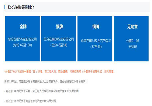 EcoVadis認(rèn)證的評(píng)分等級(jí)